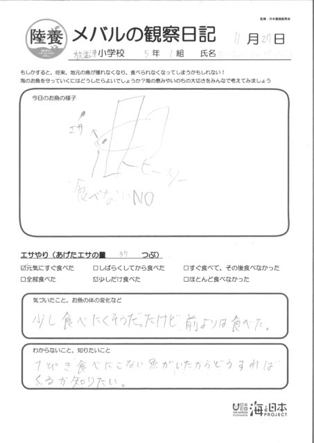 ヒーターに隠れていた1匹、今日はいつもよりエサを食べてくれたようですね。