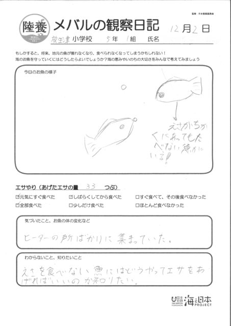 12月に入りました。メバルも温かいヒーターの周りが良いみたいです。