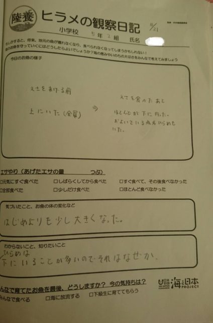 成育を始めてからもうすぐ1か月。加計塚小のヒラメたち、大きくなっているようです。