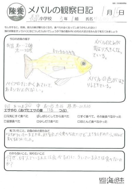 浮いていて食べてくれなかったエサ、沈めたら食べてくれたそう。大成功!