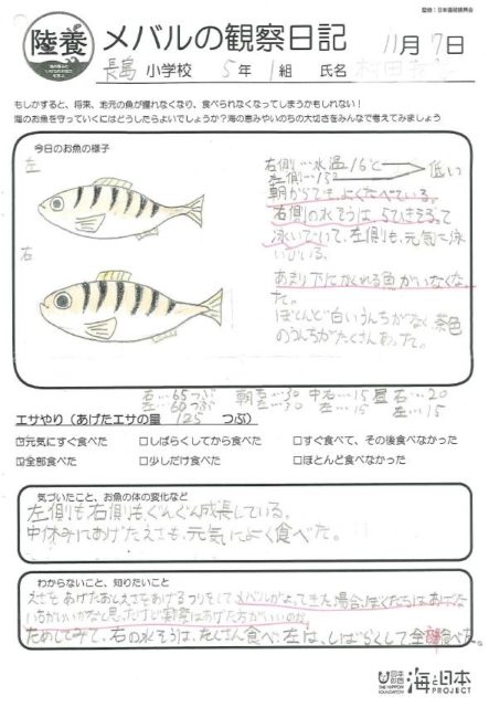 水温や泳ぎ方、えさの量まで、とてもよく観察していますね。魚のストレスにならないように、えさの上げ方をいろいろ試しているようですね。