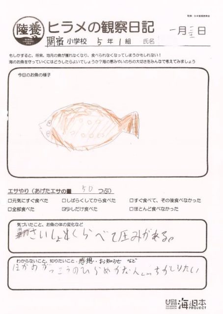 ヒラメの成長で子どもたちもやる気が一層出てきました。