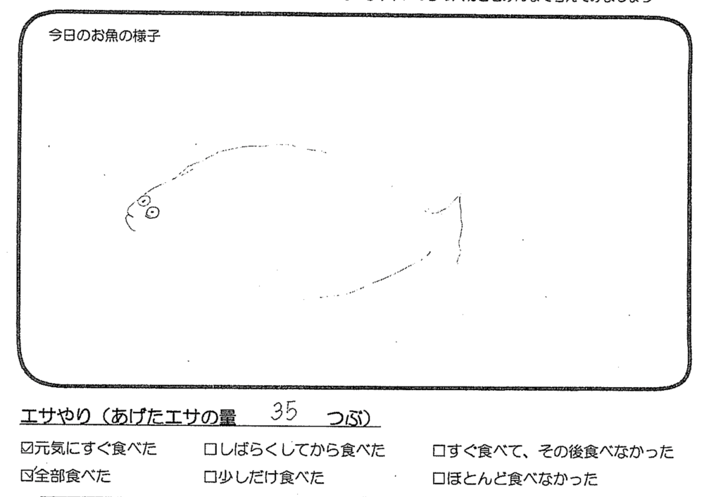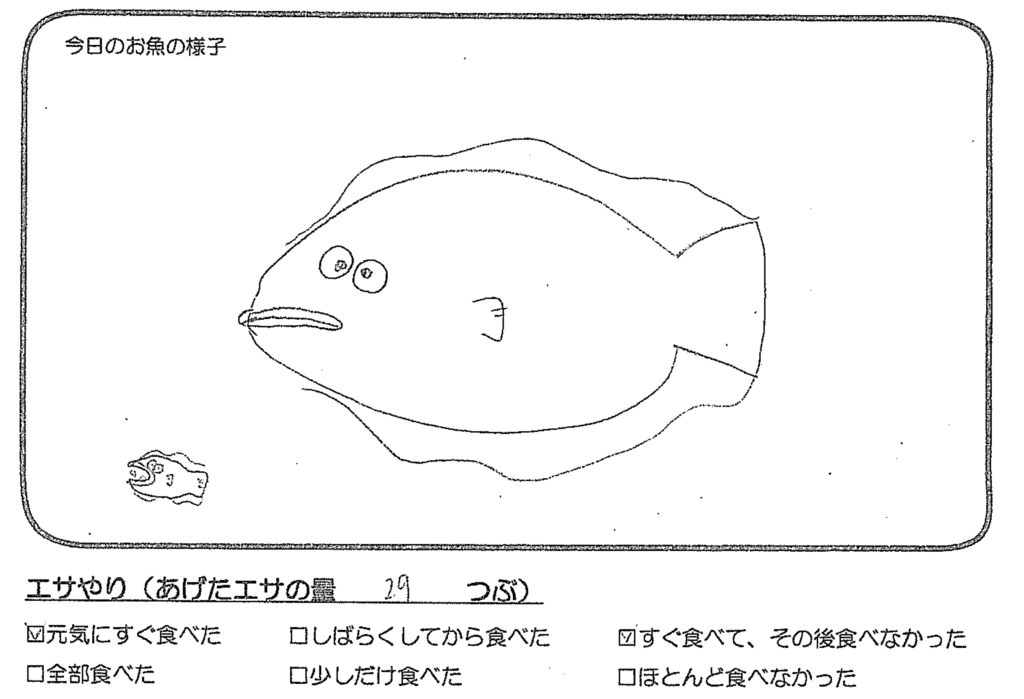 2021年11月26日 / 最終更新日 : 2021年12月22日 弘道小学校 少しづつ大きくなっている! 11月10日 からだがどんどん大きくなっています。 11月12日 前より元気に泳いでいた。エサをあげたら、4ひき上に上がってきた。 11月16日 あくびした。少し大きくなっていた! 11月19日 ヒラメは、エサを食べる前は活発なのに食べた後は動かなかった。 11月22日 大きくなっていた(8cmくらい)