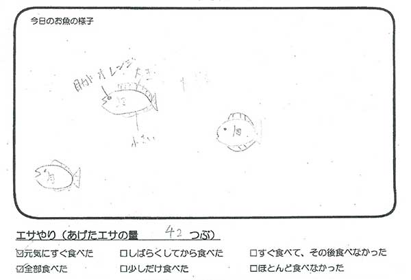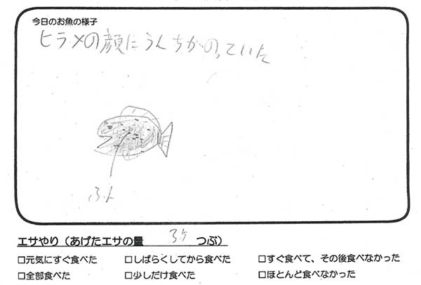 上下のひれの大きさがちがう。上→大きい 下→小さい